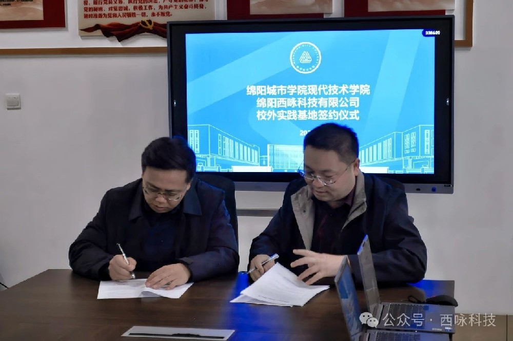 为深化产教融合,助力应用型人才培养,2025年3月6日绵阳西咏科技有限公司与绵阳城市学院现代技术学院正式签署校外实践基地合作协议。此次签约标志着校企双方在“学研结合、协同育人”的道路上迈出坚实一步,共同开启实践教学与产业需求无缝对接的新篇章!01合作目标:培养创新实践型人才双方以“优势互补、互利共赢”为原则